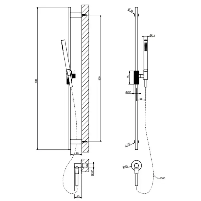 Gessi Anello Душевой гарнитур, душевая штанга, ручной душ, шланг 150см. и вывод воды, цвет: Finox Brushed Nickel