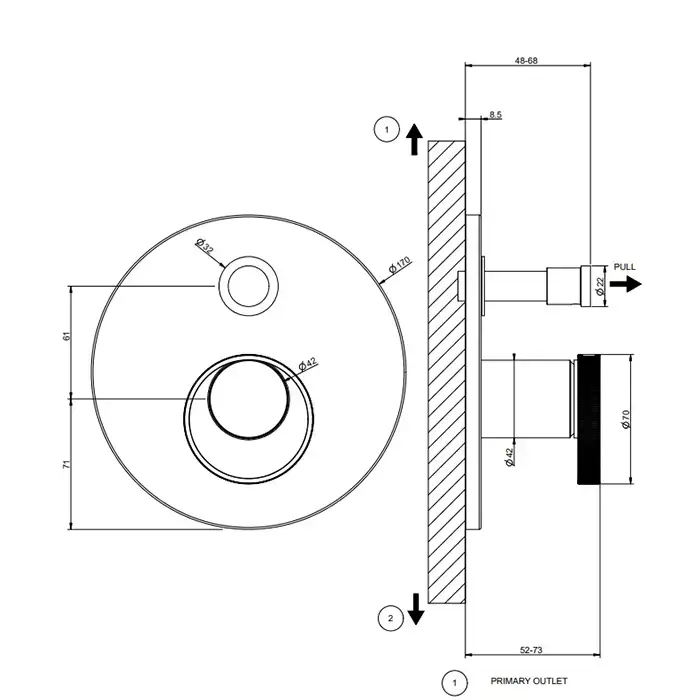 Gessi Anello Смеситель для душа, встраиваемый, на 2 выхода с перекл. (внешние части), цвет: Black Metal Brushed PVD