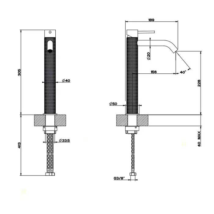 Gessi Cesello Смеситель для раковины высокий, без донного клапана, цвет: шлифованная сталь