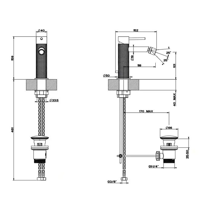 Gessi Cesello Смеситель однорычажный для биде с донным клапаном, цвет: шлифованная сталь