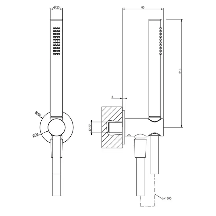 Gessi Душевой комплект с держателем с подводом воды, ручным душем и шлангом 150см., цвет: Black XL