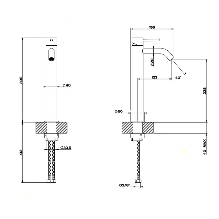 Gessi Flessa Смеситель для раковины высокий, без донного клапана. цвет: шлифованная сталь
