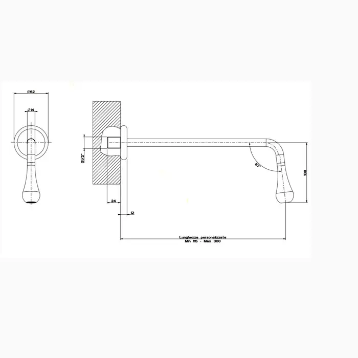 Gessi Goccia Настенный излив с инд.длиной (115-300мм), для монтажа с удаленным управлением 33700/33743 (не входит в комплект), цвет: хром