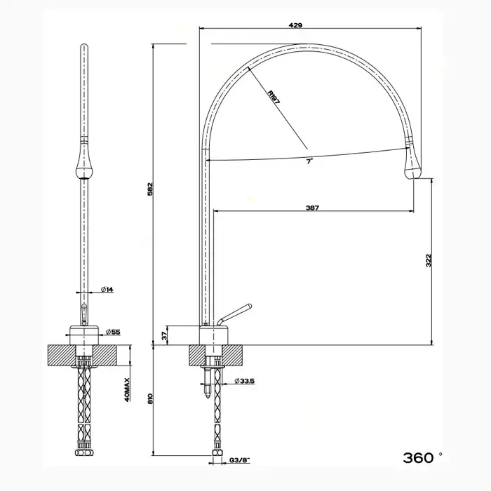 Gessi Goccia Смеситель для раковины на 1 отверстие, излив 387мм R=197, цвет: хром