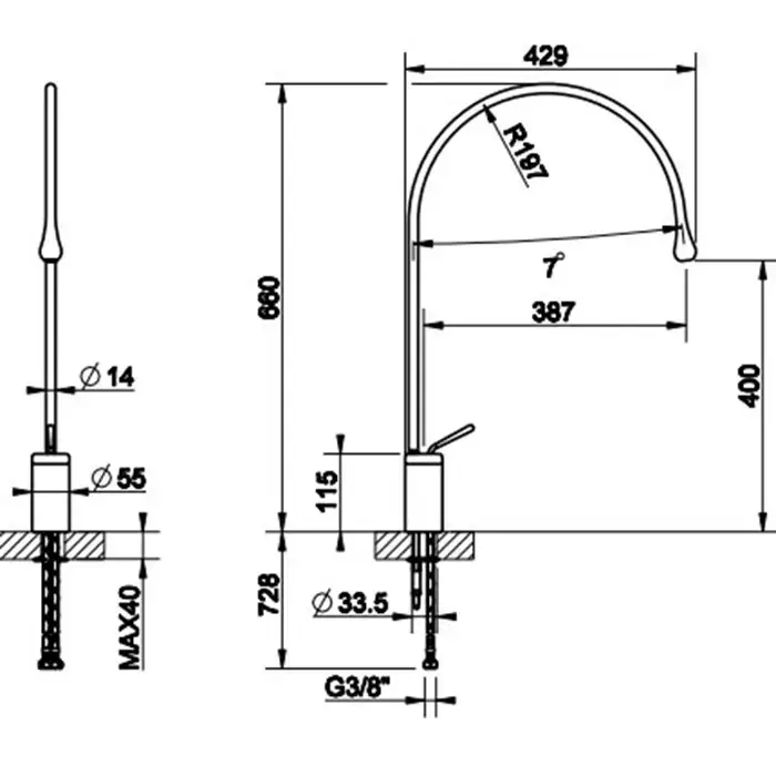 Gessi Goccia Смеситель для раковины на 1 отверстие, высокий, излив 387мм R=197, цвет: белый