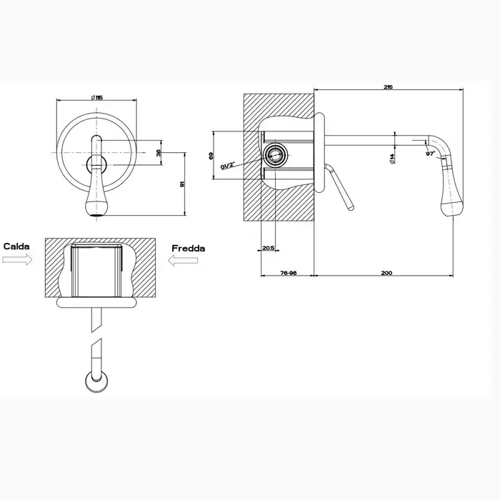 Gessi Goccia Встраиваемый однорычажный смеситель для раковины, излив 200мм, внешняя часть, цвет: хром