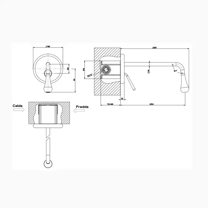 Gessi Goccia Встраиваемый однорычажный смеситель для раковины, излив 250мм, внешняя часть, цвет: хром