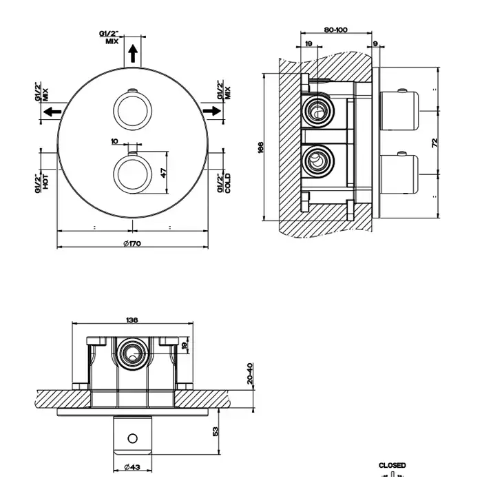 Gessi Goccia Встраиваемый термостат, подключение на 3/4”, с переключателем на 3 выхода, внешняя часть, цвет: белый