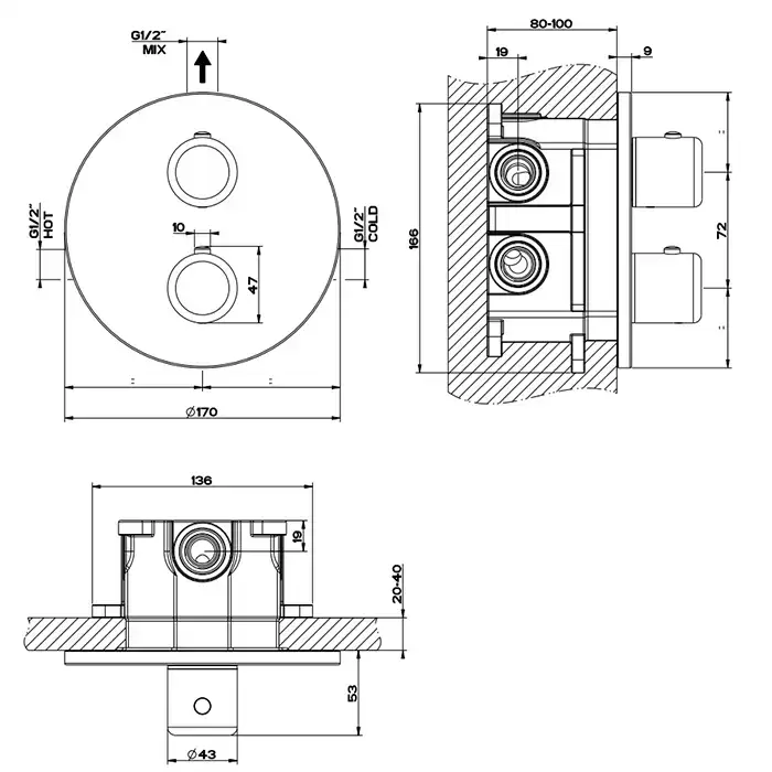 Gessi Goccia Встраиваемый термостатический смеситель, подключение на 3/4”, внешняя часть, цвет: шлифованный хром