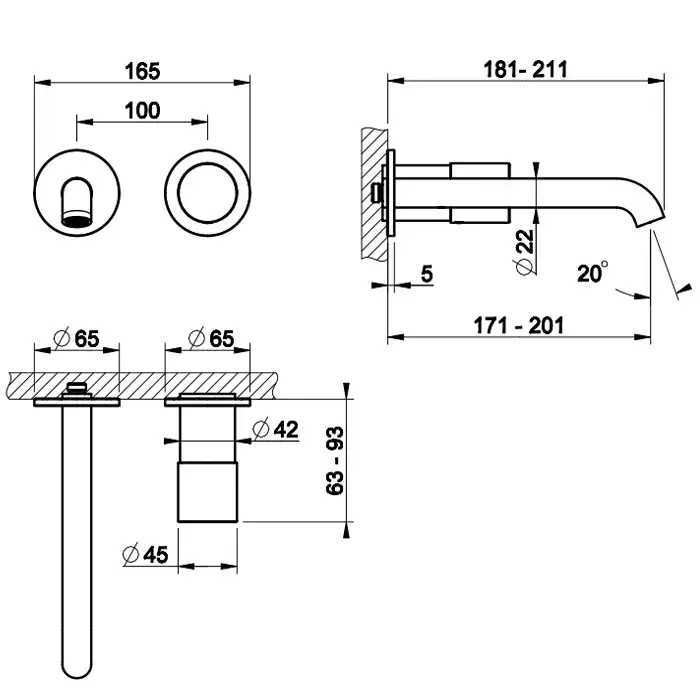 Gessi Habito Cesello Смеситель для раковины, настенный, цвет: Brass Brushed PVD