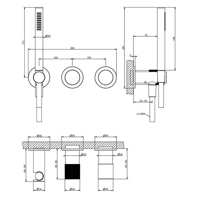 Gessi Habito Diamantao Смеситель настенный встраиваемый, однорычажный, с переключателем на 2 положения, с ручным душем, настенным держателем,цвет: хром
