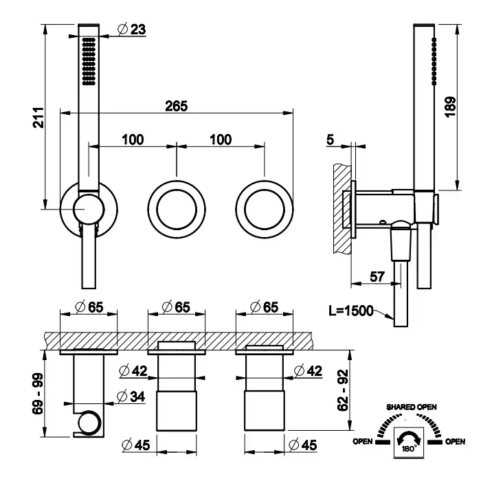 Gessi Habito Trame Смеситель для душа, настенный, с переключателем на 2 положения, ручным душем и держателем, цвет: Black Metal Brushed PVD