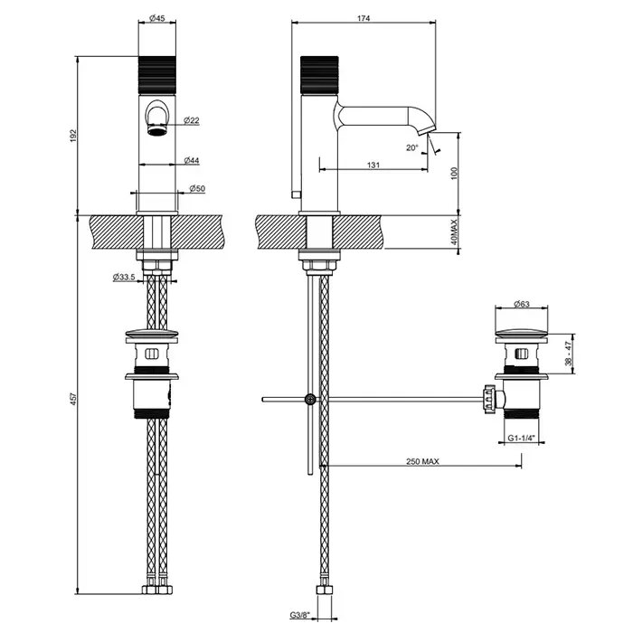 Gessi Habito Trame Смеситель для раковины, на 1 отв., с донным клапаном, цвет: Black Metal PVD