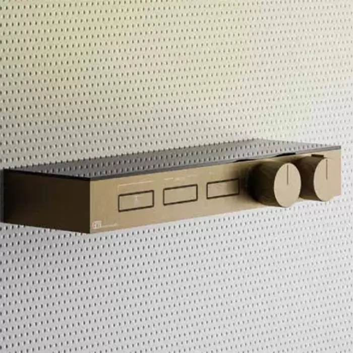 Gessi Hi-Fi Термостат для душа, с вкл. до 3 источников одновременно, с полкой из черного мат. стекла, внешняя часть, цвет: Warm bronze brushed PVD