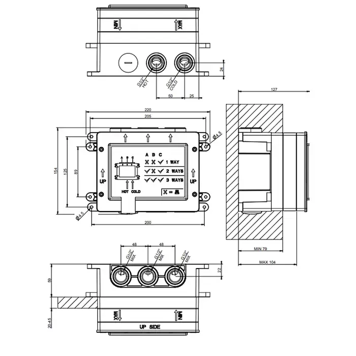 Gessi Hi-Fi Встраиваемые части для термостатического смесителя с кнопками, 1/2" соединение., цвет: хром