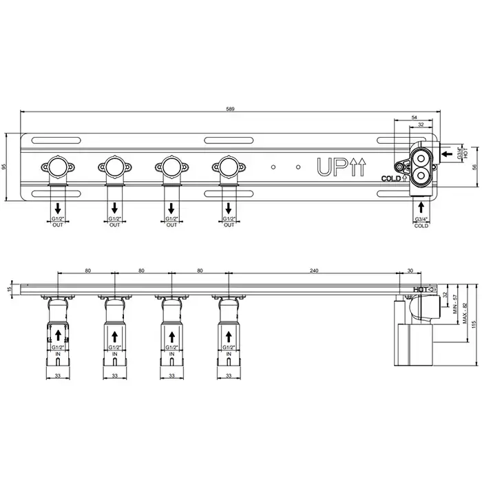 Gessi Hi-Fi Встраиваемые части для термостатического смесителя с полочкой, до 4 источников одновременно, 1/2" соединение., цвет: хром