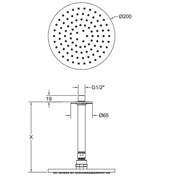 Gessi Inciso Shower Потолочная душевая головка шарнирная с защитойот известкового налёта на 1/2", Ø200 мм, длинаизготавливается под заказ, цвет: black XL