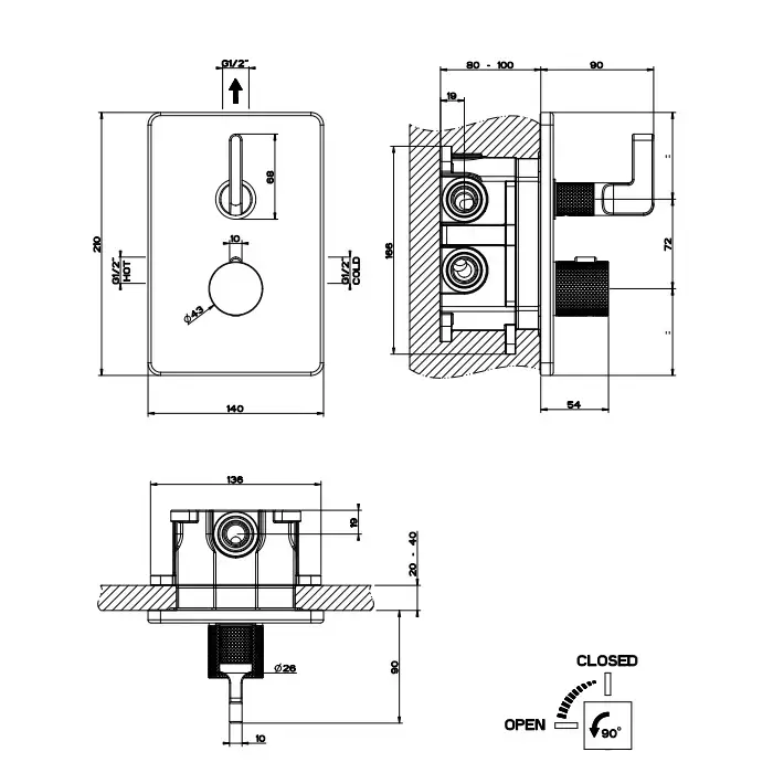 Gessi Inciso Смеситель для душа с переключателем на 1 выход, термостатический, внешняя часть, цвет: хром