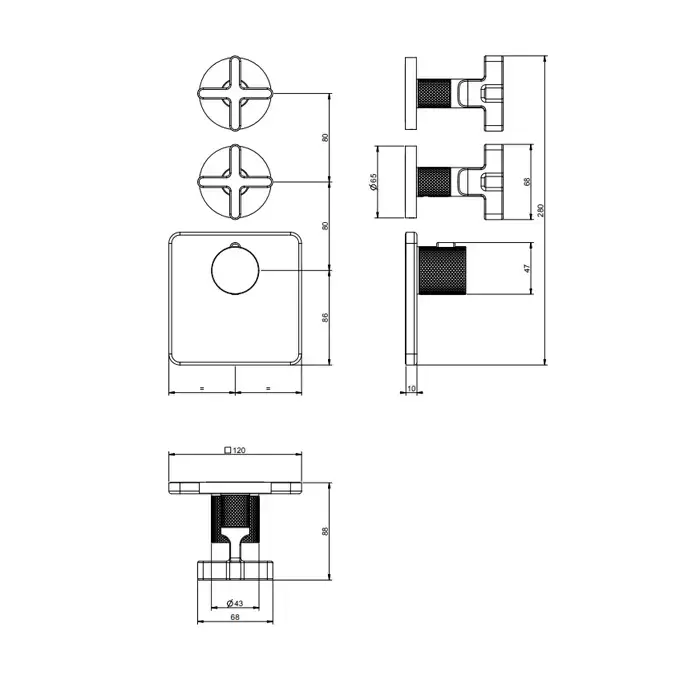 Gessi Inciso Смеситель для душа, встраиваемый, термостатический, резьба 3/4", внешняя часть, цвет: Black XL
