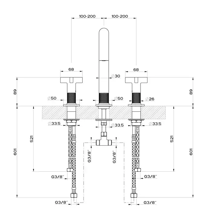 Gessi Inciso Смеситель для раковины на 3 отверстия без донного клапана, излив 160мм, h=240мм, цвет: finox