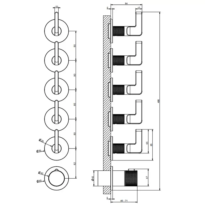 Gessi Inciso Смеситель для ванны, настенный, термостатический, на 5 выходов, цвет: Black Metal Brushed PVD