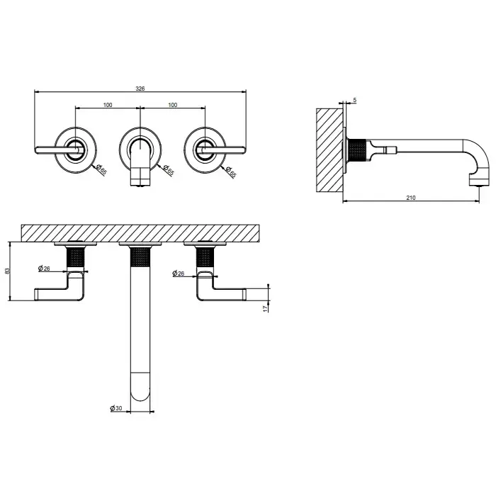 Gessi Inciso Смесителя для раковины, встраиваемый, без донного клапана. внешняя часть, цвет: золото