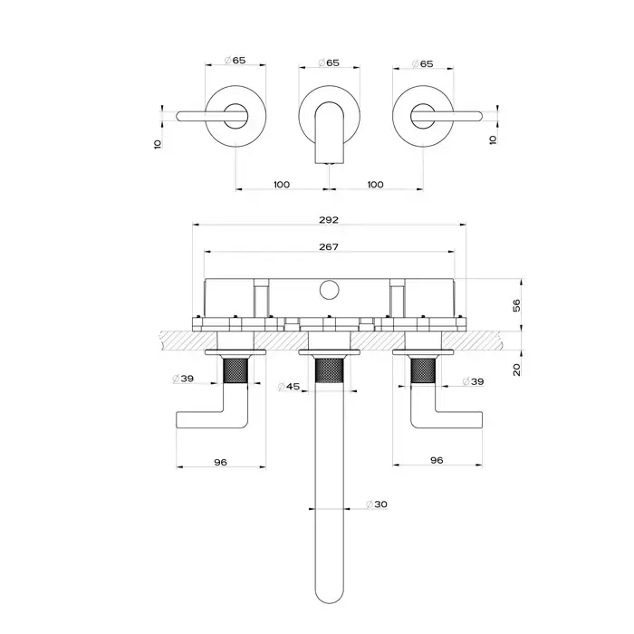 Gessi Inciso- Встраиваемый смеситель для раковины на 3 отверстия с изливом, без донного клапана. внешняя часть, цвет: black XL
