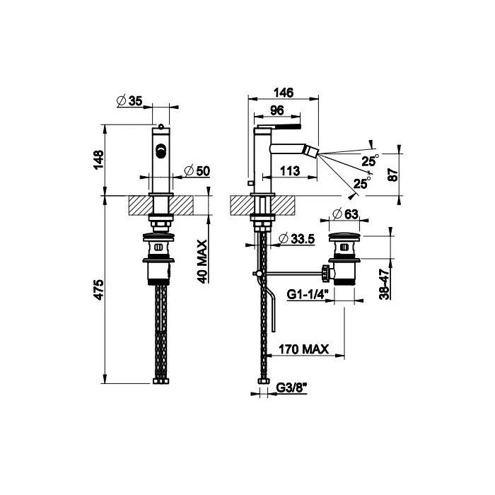 Gessi Ingranaggio Смеситель для биде на 1 отв. с донным клапаном, цвет: хром