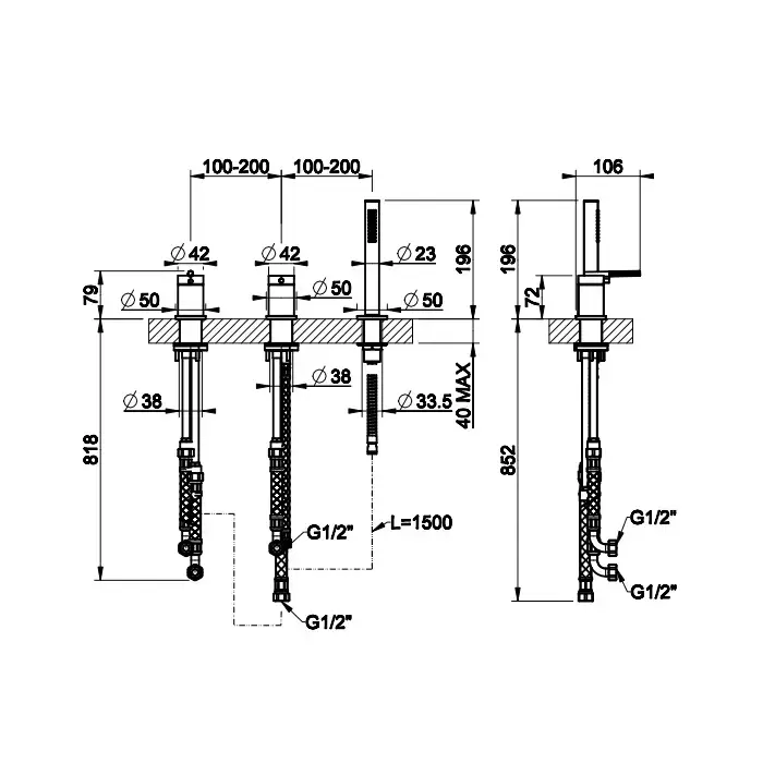 Gessi Ingranaggio Смеситель для ванны на 3 отверстия наполнение через слив-перелив, лейка, цвет: хром
