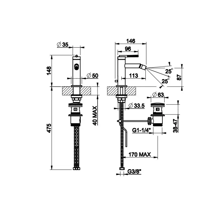 Gessi Ingranaggio Смеситель для ванны на 4 отверстия с каскадным изливом, девиатор, шланг , лейка, цвет: хром