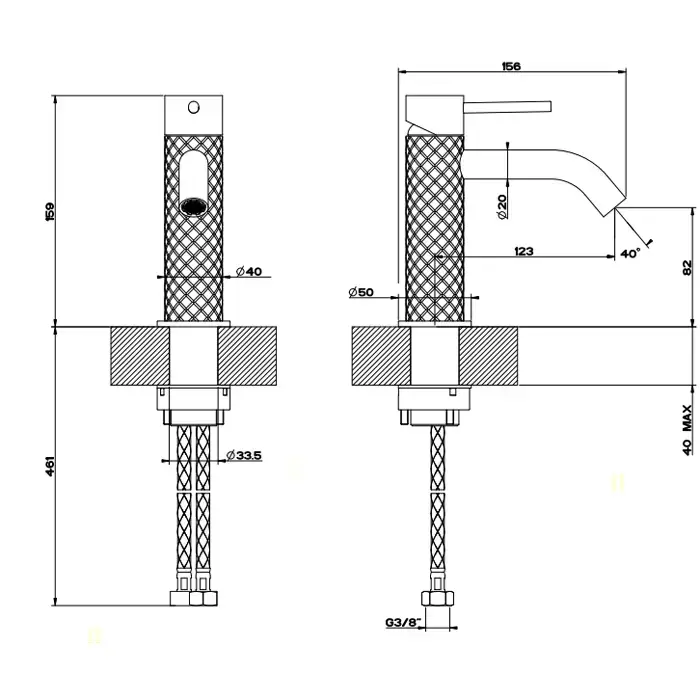 Gessi Intreccio Смеситель для раковины, без донного клапана, цвет: шлифованная сталь