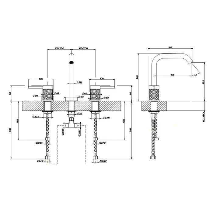 Gessi Intreccio Смеситель для раковины на 3 отверстия, без донного клапана, цвет: шлифованная сталь