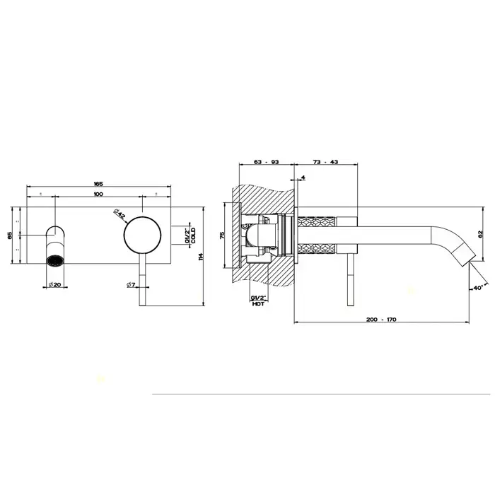 Gessi Intreccio Встраиваемый однорычажный смеситель с изливом, без донного клапана, внешняя часть, цвет: шлифованная сталь