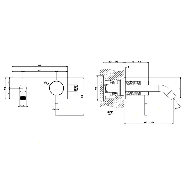 Gessi Intreccio Встраиваемый однорычажный смеситель с изливом, без донного клапана, внешняя часть, цвет: шлифованная сталь