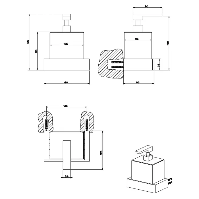 Gessi Inverso Accessories Дозатор для жидкого мыла, подвесной, цвет: черный/Brass Brushed PVD