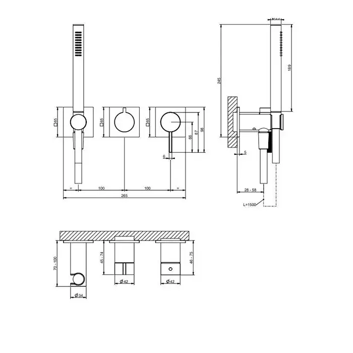 Gessi Inverso Diamantato Внешняя часть настенного смесителя для душа на 2 выхода,с ручным душем цвет: Warm Bronze Br PVD