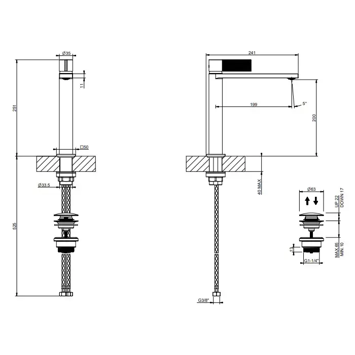 Gessi Inverso Rigato Смеситель для раковины, 1 отв., с донным клапаном "Stop&Go", цвет: Warm Bronze Br PVD