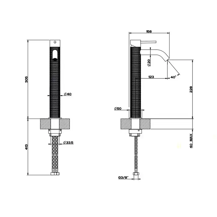 Gessi Meccanica Смеситель для раковины высокий, без донного клапана, цвет: шлифованная сталь