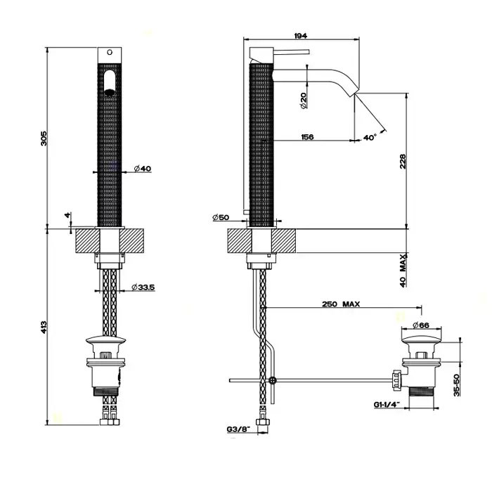 Gessi Meccanica Смеситель однорычажный высокий с донным клапаном, цвет: шлифованная сталь