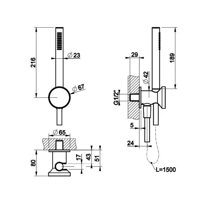 Gessi Origini Душевой комплект: вывод воды, держатель, шланга 1500 мм, лейка, цвет: хром
