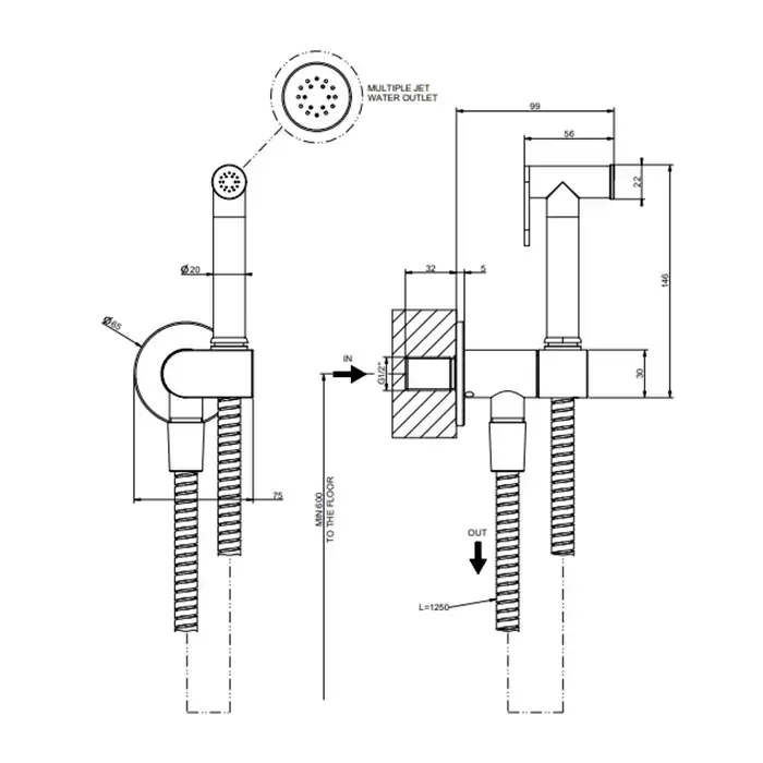 Gessi Origini Гигиенический душ, шланг 125см., цвет: Black Metal PVD