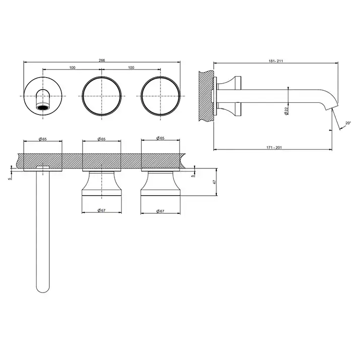 Gessi Origini Смеситель для раковины, встраиваемый с изливом: 17.1см., (внешняя часть) цвет: Finox Brushed Nickel