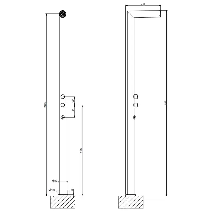 Gessi Outdoor Душевая стойка для установки на улице, напольная, на 2 выхода, без ручек, ручного душа и верхнего душа, внешняя часть, цвет: Black XL