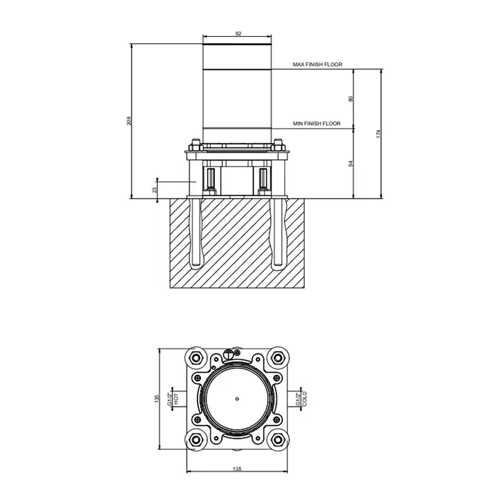 Gessi Outdoor Встраиваемая часть для уличной душевой стойки с соединениями на 1/2”.. цвет Steel Brushed