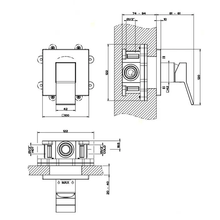 Gessi Rettangolo K Встраиваемый однорычажный смеситель без излива, внешняя часть, цвет: хром