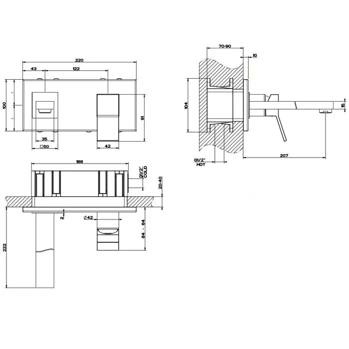 Gessi Rettangolo K Встраиваемый однорычажный смеситель для раковины, излив 201мм, внешние части, цвет: хром