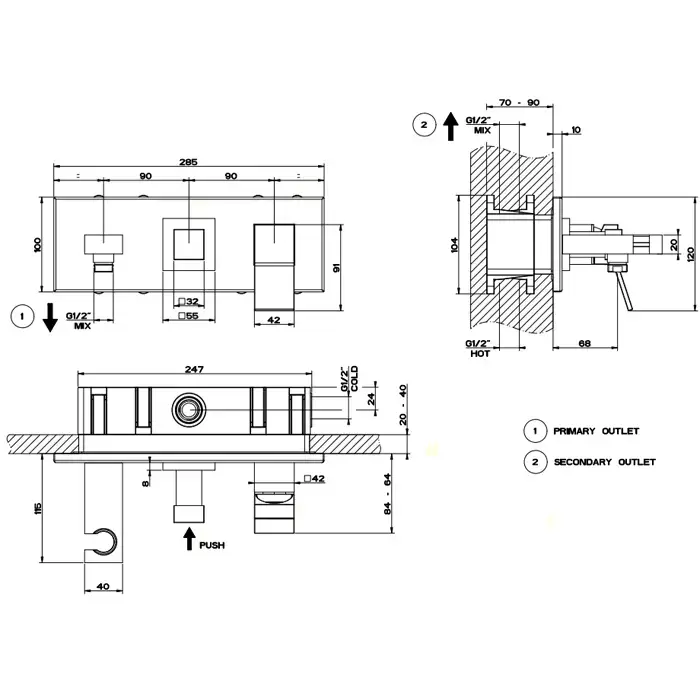 Gessi Rettangolo K Встраиваемый смеситель, с подводом воды, держателем лейки и переключателем PUSH, внешняя часть, цвет: black XL