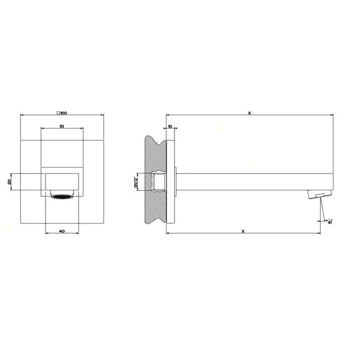 Gessi Rettangolo Настенный излив для ванны, для монтажа с удаленным управлением (не входит в комплект), индивидуальная длина, цвет: хром