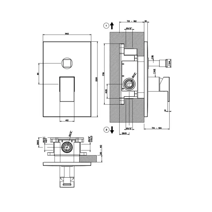 Gessi Rettangolo Смеситель, встраиваемый, термостатический с автоматическим переключателем ванна/душ, внешняя часть, цвет: Black XL