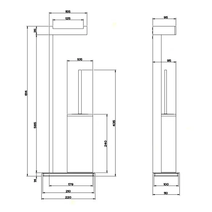 Gessi Rettangolo Стойка 61.4см., с держателем для туалетной бумаги и ершиком, напольная, цвет: хром/белый